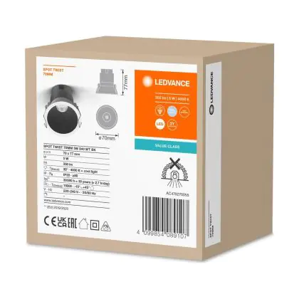 Ledvance LED Spot Twist Pro Aluminium Zwart Reflector 5W 350lm 30D - 840 Koel Wit | 70mm - Zaagmaat 65mm - IP20