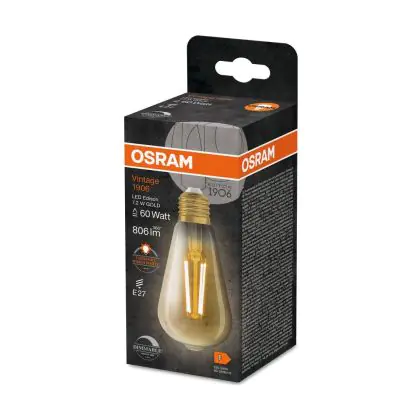 Osram Vintage 1906 LED E27 Edison Filament Goud 7.2W 806lm - 824 Zeer Warm Wit | Vervangt 60W